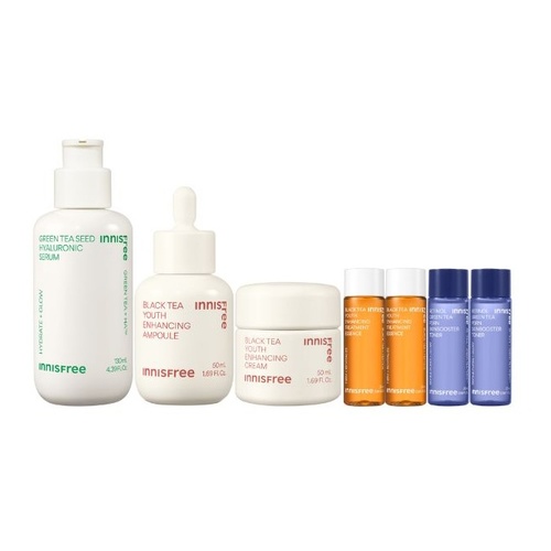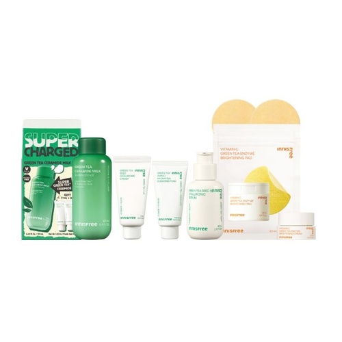 除此之外,INNISFREE最經典的綠茶保濕系列,全新上市3秒超導保濕快充—「綠茶神經醯胺牛奶水精華」也於10月1日起推出優惠組,購買就送綠茶系列保濕霜及潔面乳,超輕透牛奶水感質地也擄獲INNISFREE全球代言人金珉奎的心,是今年週年慶絕對要加入購物車的首選品項!