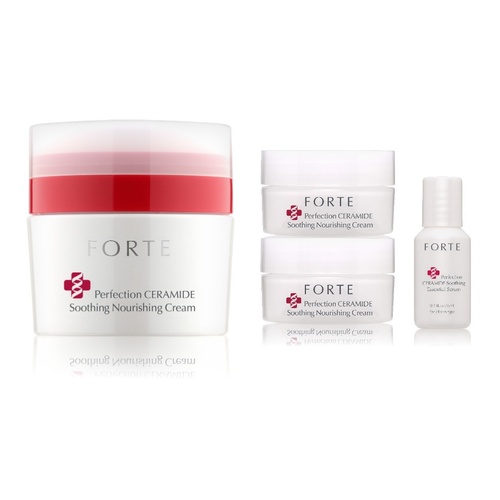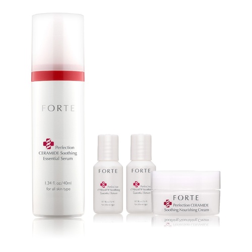 FORTE新一代「Ceramide全效舒緩精華液、Ceramide全效舒緩滋養霜」以更親膚、吸收力更佳的專利醣基神經醯胺搭配多重修護因子:甘草次酸、蛇床子、積雪草苷、有機復活草、維他命B5與小花蔓澤蘭萃取,進化升級肌膚的保濕補水力、舒緩修護力,完美實現肌膚自由、KO肌敏!歡慶「Ceramide全效舒緩系列」全新上市,推出週年慶限定優惠組合【全效舒緩組】、【舒緩滋養組】,邀請渴望健康穩定膚況的你即刻入手,重拾自信神采!