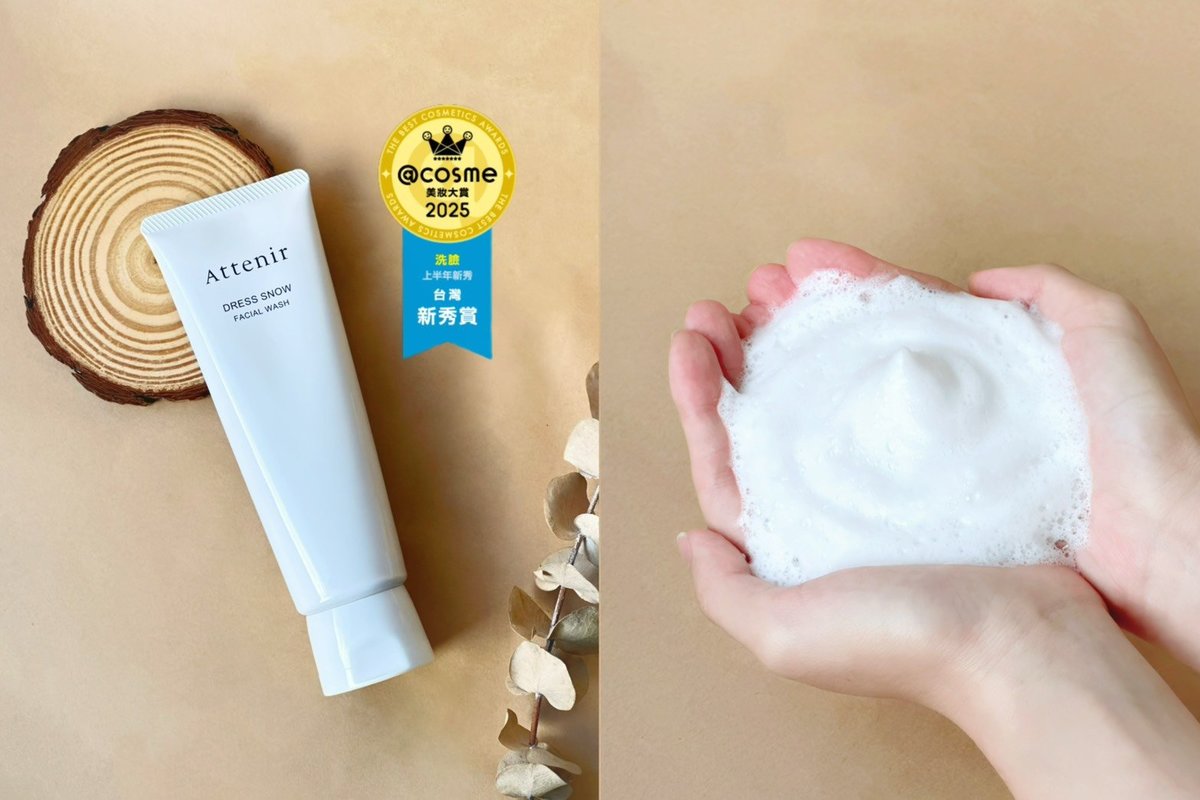 不要忘記了~ 卸妝後的清潔也同樣重要,別讓後續的清潔步驟打亂了秋冬保養的節奏!尤其是在秋冬季節,要特別慎選,小心潔顏產品造成的肌膚乾燥、屏障脆弱,因此洗臉產品必須以最高標準對待,要既能深層潔淨又不帶走水分!Attenir 「雪臻優皙潔面乳」想必就是最適合你的選擇,台灣一上市立刻就榮獲2025年度 @cosme 台灣美妝大賞 上半年新秀賞【洗面乳】第1名,讓網友一致好評的絕對是雪臻優皙潔面乳的「高彈力微米級泡沫」,泡沫細緻如雲朵、直徑小於20μm,自動吸附油脂與髒污,同時降低摩擦、不擔心強力清潔造成的肌膚傷害!