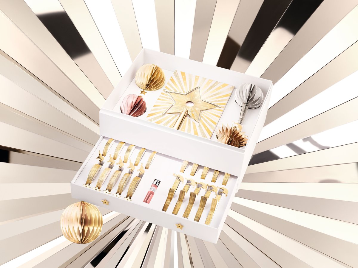 設計靈感源自傳奇藝術家 René Gruau的一幅經典畫作,一次獻上24款限量聖誕香氛紙飾,以嫩粉、燦金與銀色交織褶皺工法,流轉出細膩的紙藝美學,並鑲嵌著馬戲團動物燦金吊飾,重現馬戲團的歡愉盛景。每款香氛掛飾都能輕灑一縷《迪奧香氛世家-特拉法加香氛》(禮盒內含12 ml),讓甜美的花果芬芳幻化為節慶魔法,將夢想照亮成真。隨組附上的「迪奧幸運星聖誕樹頂裝飾」,以佳節限定圖騰鏤刻其上,與香氛掛飾相互呼應,讓聖誕樹綻放獨一無二的迪奧氣韻,為居家生活美學增添優雅與精緻的聖誕氣息。