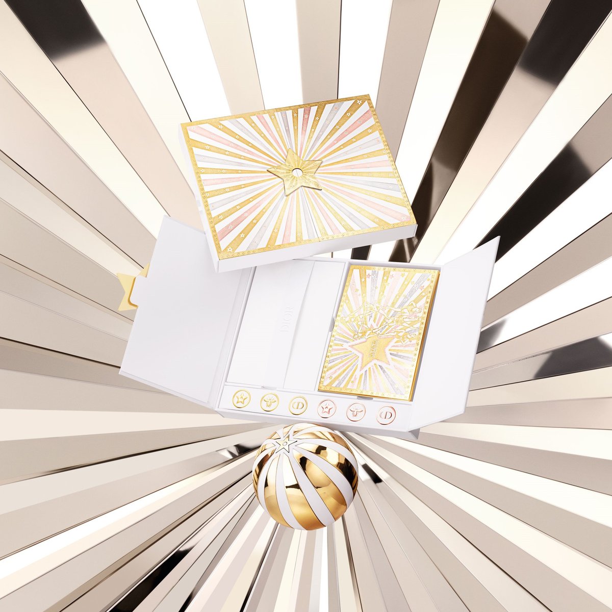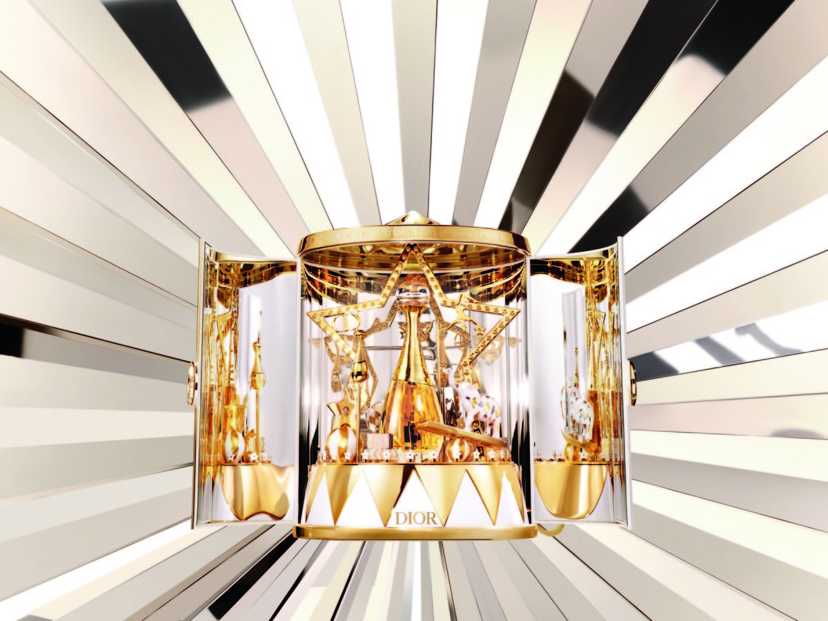 以「奇幻星願馬戲團」為主題,結合迪奧幸運之星、J’adore香氛與聖誕禮盒,打造夢幻的「迪奧奇幻星願小小世界」。圓弧頂造型呼應馬戲團帳篷,轉軸以CD Logo設計並綴以幸運星,開啟CD鈕扣如揭幕般展開旋轉樂景,伴隨輕盈樂音,營造節慶愉悅氛圍。盒內為《J’adore 頂級金緻香精》,以橙花、大花茉莉與五月玫瑰的馥郁花香,展現經典花束的純粹與深邃。(現已全數完售)