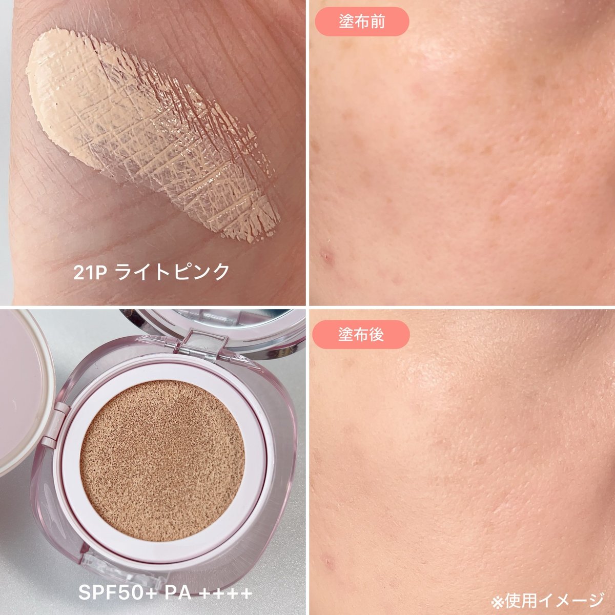 「粉底液給得很足,就算不用特別用力把氣墊壓下去也能沾到粉底;而且那個QQ的粉撲不太會吃粉,用到最後看起來還是很乾淨。遮瑕力也不錯,下班後肌膚也不會覺得乾,整體用起來真的覺得超棒!」(ごま2222さん)