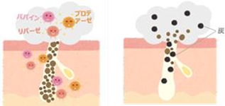 搭配表面有無數孔洞可吸附髒污的炭粉特性,「炭微粒」隨綿密泡泡深入肌膚,強力吸附被分解成小碎塊的毛孔粉刺髒污。
