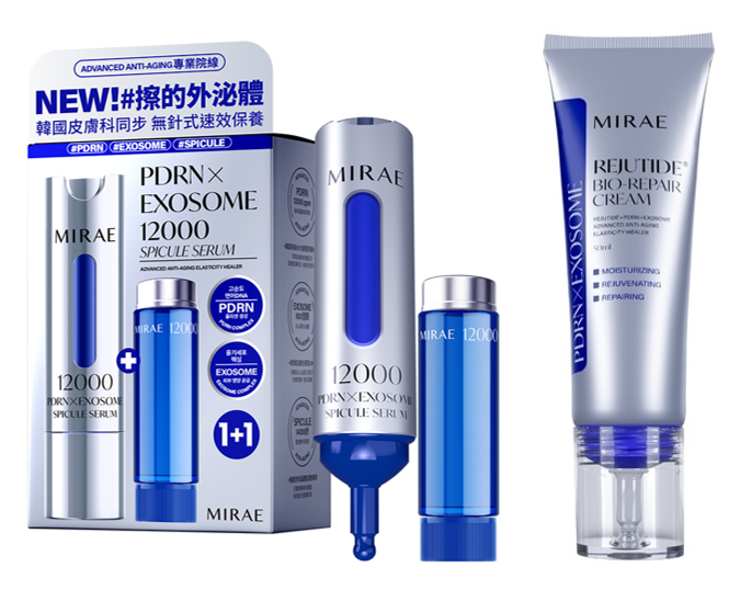 提到與韓國院線同步的保養品牌,絕對不能不提到 MIRAE 未來美!始終走在保養科技最尖端的未來美,先前推出的「專業院線PDRN外泌體系列」針管精華 & 外泌體面膜,讓網友o3o驚呼「能呈現非常漂亮的水光肌!」、sandy4616也分享「用完隔天皮膚摸起來很滑,肌膚也比較有光澤、毛孔較緊致」,兩款產品一上市就因為超有感的保濕修護力,被網友封為「擦的水光課程」,穩坐「外泌體霸主」的寶座!