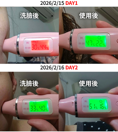 而 lilu chen 除了大讚這款精華的功效:「即便近期氣候不穩,我的熟齡肌依然維持得非常穩定。在充足水分灌溉下顯得飽滿許多,光澤感也自然透出。」更是直接拍下實測數據表示:「擦上這款精華後,數值立即逆轉,水分大幅升。」