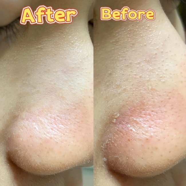 Yul 曬出自己使用後的對比照驚艷大推:「乾燥紋明顯改善,甚至快看不到了,臉上一些小細紋也變得似有若無。皮膚比較沒有顆粒感,較平滑細緻,皮膚乾燥的狀況改善不少。肌膚也顯得較淨白透亮,不再那麼暗沉。皮膚更緊緻、也更Q彈,整體都較健康與穩定。」