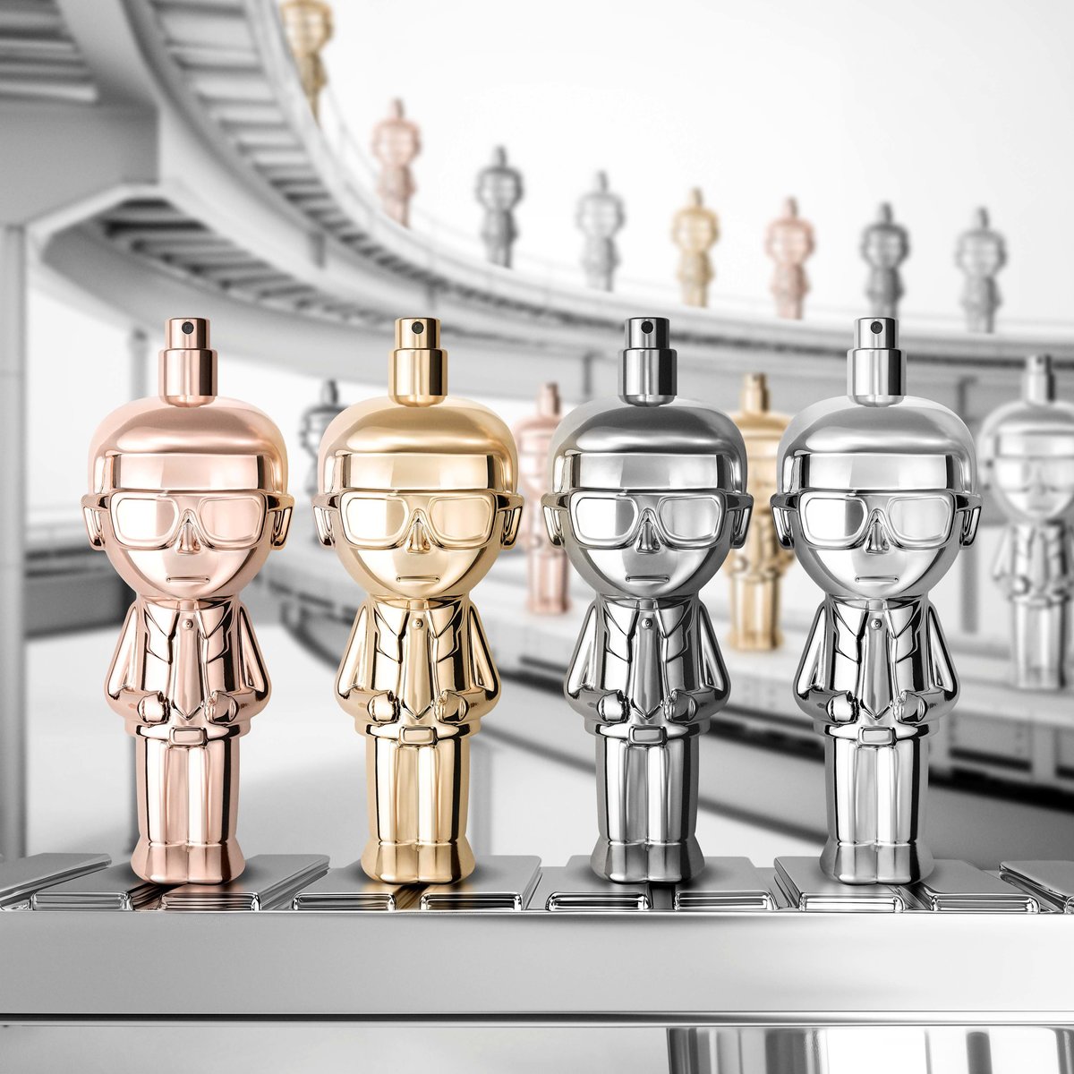 - 「IKONIK ABSOLU」香精系列的瓶身有什麼設計特色?「IKONIK ABSOLU」香精系列的瓶身設計大膽升級,換上了充滿未來感與奢華氣息的金屬鏡面喔!它延續了KARL IKONIK系列的立體雕塑玻璃瓶身,完美復刻卡爾·拉格斐最為人熟知的招牌造型,像是馬尾、高冷姿態到雙手抓西裝領口的動作,是非常具收藏價值的時尚物件!