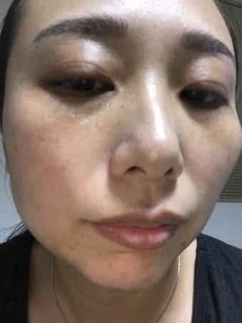 將粉底液與奇蹟水調和後擦於臉上真的很好推勻也很服貼不卡粉好喜歡(臉頰上的泛紅這蓋住了這張才是有上粉底的沒錯haha)好喜歡這款商品要換季了皮膚更敏感保濕更要做好試用這次八日的體驗後我也想購入了:)