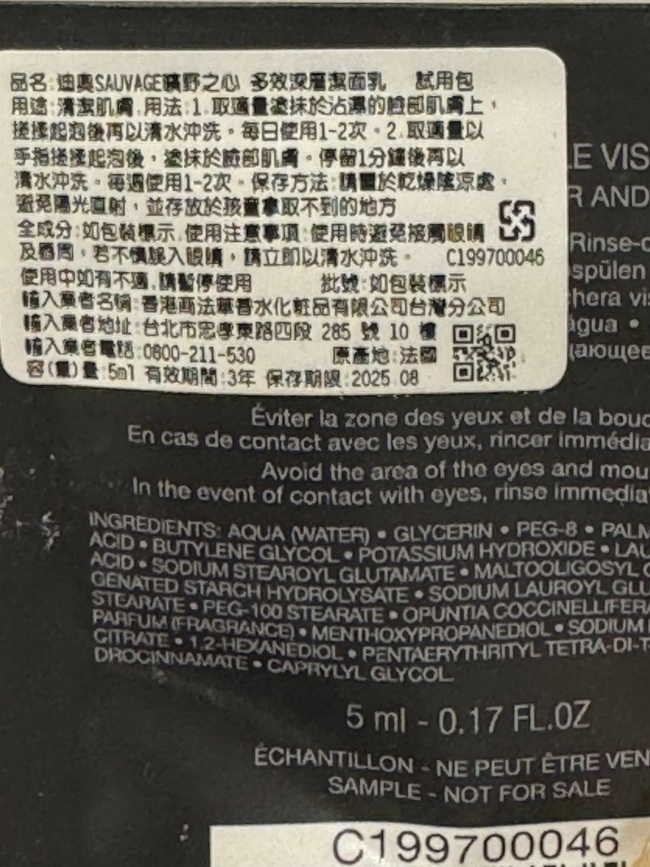 《迪奧曠野之心潔面乳》結合「天然活性碳」的深層潔淨功效及「仙人掌原露」的高效保濕能量,可有效去除99%肌膚雜質4,為肌膚帶來長達8小時保濕舒適5。獨特的曜黑乳狀質地,取適量於手心加水搓揉,立即轉化為細緻白色泡沫,可深層淨化肌膚,帶走老廢角質,使潔淨後的肌膚不乾澀緊繃、膚觸更加平滑柔嫩。