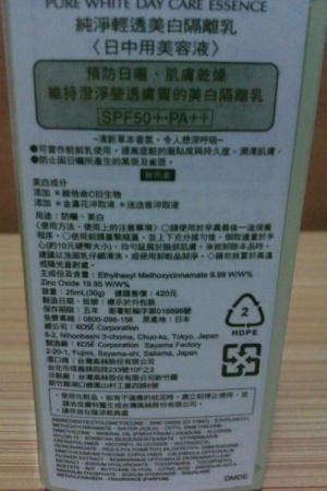 純淨輕透美白隔離乳 SPF50+ PA++ Pure White Day Care Essence SPF50+ PA++